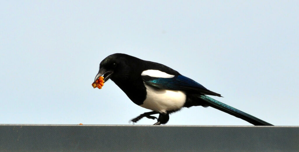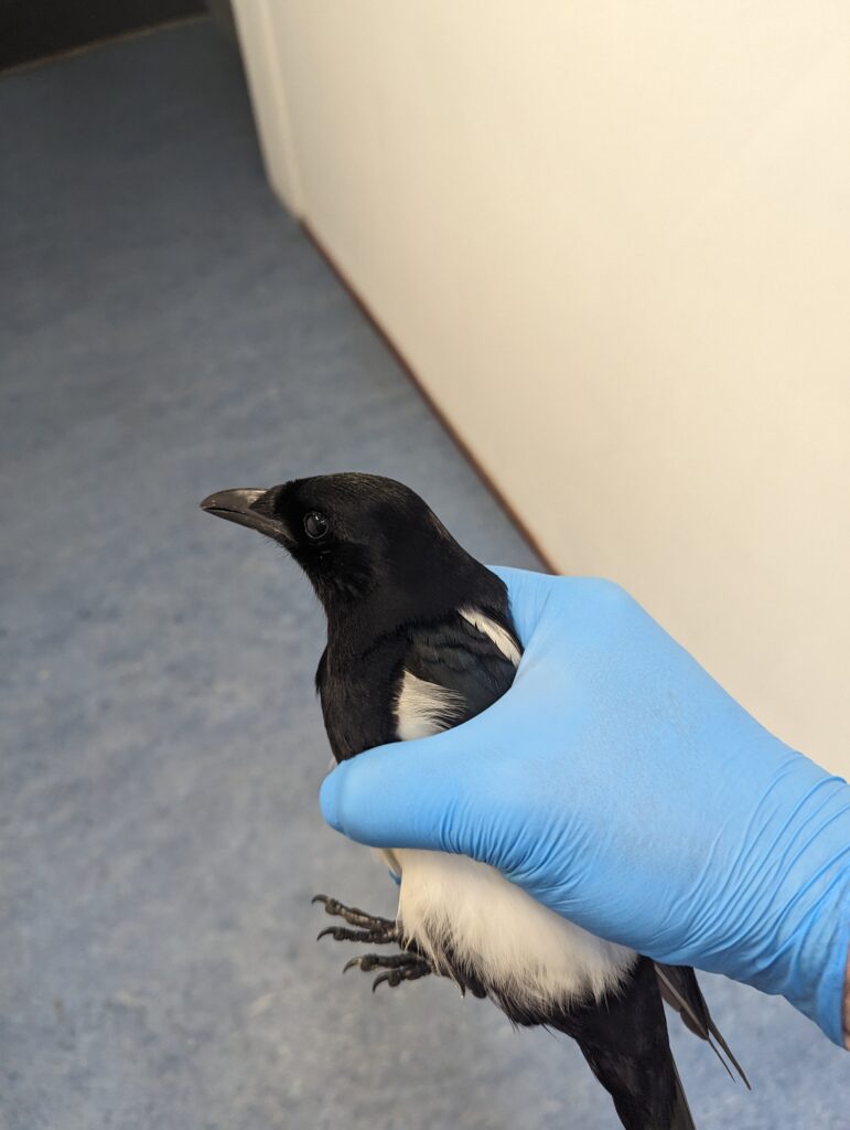 Ik heb ook nog een fotootje van een ekster die minder slim is, want die is bij Wildopvang Someren terecht gekomen, maar deze foto is genomen nét voordat hij weer los werd gelaten.
